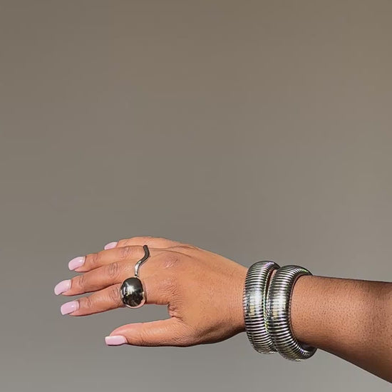 The Amelia Textured Bangle combines the elegance of 18k gold plating with the durability of stainless steel. It's textured design adds a unique twist to any outfit, making it the perfect accessory for any occasion. Elevate your style with this luxurious bangle!